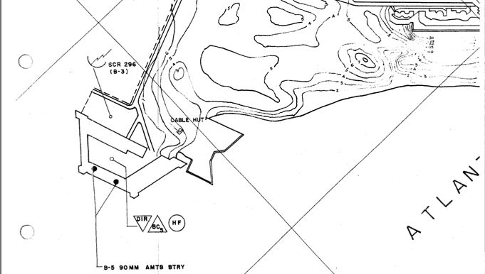 The AMTB battery at Fort Taylor (2) consisted of two fixed 90mm guns mounted on 90mm M3 gun mounts and two 90mm mobile guns held in storage. The two mobile 90mm guns and carriages were stored inside Fort Taylor (2). Concrete pads for both fixed guns were laid inside Fort Taylor (2), one in emplacement #2 of Battery Adair and one in the bastion next to Battery Adair.