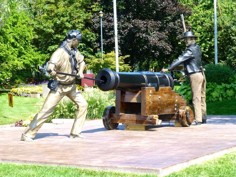 Amherstburg Navy Yard Site Statue of Naval Gunners, photo by John Stanton 16 Aug 2013
