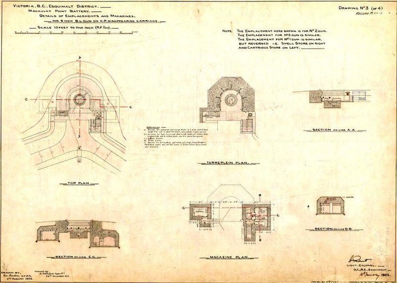Fort Macaulay Gun Emplacement Plan 1903, Canadian Library and Archives, Online MIKAN no. 4143184