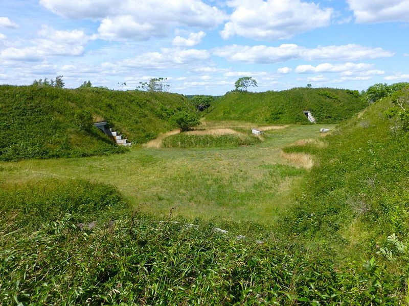 Fort Scammel Interior Parade Lined with Earth Covered Magazines, photo by John Stanton 3 Jul 2012