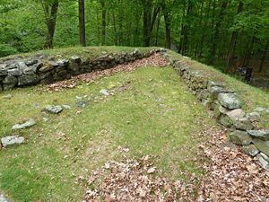 Part of Bear Mountain State Park, Orange County, New York. The remains of the West Bastion of Fort Clinton are visible along the trail through the Bear Mountain Zoo. Portions of the fort lay under the approach to the Bear Mountain Bridge and the toll booth area and on the north side of the approach road to the bridge.