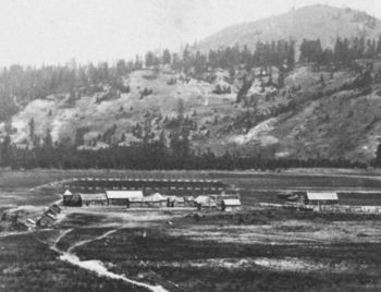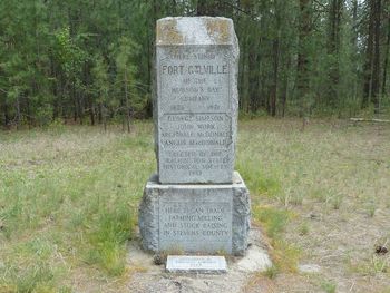 Fort Colvile (1826-1871) - Established in 1826 by George Simpson, governor of the Hudson's Bay Company (HBC), as the largest of the HBC posts between the Cascade Mountains and the Rocky Mountains. Named for Andrew W. Colvile, a governor of the HBC. (Do not confuse with Fort Colville which was the United States Army fort located in the same area.) Located at Kettle Falls on the Columbia River in Stevens County, Washington. Closed in 1871. HistoryConstruction of Fort Colvile began in August 1825 but proceeded slowly, due in part to the apparent ineptitude of some of the crew. The new quarters were ready by the following spring and provided a log stockade surrounding a number of log buildings, constructed in the post-and-sill style common to Hudson's Bay Company (HBC) posts. By 1841 the HBC farm spread over two hundred acres, two-thirds of which grew crops of wheat, potatoes, barley, oats, corn, peas, and garden produce. The company's cattle herd had increased from the initial bull and two heifers in 1825 to nearly two hundred by 1841. Farm facilities expanded in 1830 with the construction of a water-powered grist mill on the Colville River. In addition to supplying its own needs, Fort Colvile sold cheese, butter, and pork to the Russians at Sitka, Alaska, and sent flour, cornmeal, pork, and other products to HBC operations throughout the Pacific Northwest. In the fall of 1854, an HBC employee discovered gold on the sandbars of the upper Columbia River, in the vicinity of Fort Colvile. When the news leaked out a few months later, a predictable rush of miners flooded the region just as Governor Stevens was concluding a treaty process. Colville chief Peter John closed his lands to non-Indians in August 1855, and the following month a number of miners and an Indian agent was killed by Yakamas. A state of war erupted, and both sides remained on high alert during the next three years. Stevens met with leaders of the Spokane, Coeur d'Alene, and Colville tribes late in 1855 in an effort to contain the war. They reached no agreements at that time, however, and a meeting planned for the following spring never occurred. A frightened group of settlers met at Fort Colvile in November 1857 and petitioned the government for a company of soldiers to protect them. The Discovery of gold on the Fraser River in British Columbia in 1858 intensified the problem. Colonel Edward J. Steptoe and his two hundred troops felt the full force of Indian wrath when they ventured out from Fort Walla Walla (2) in May, only to be soundly defeated by a coalition force of between six hundred and sixteen hundred Indians. The victory, while sweet, was short-lived. Colonel George Wright and his Army troops won two decisive battles later that summer and ended the war. In an effort to permanently cripple the Indians and ensure that they could never fight again, Wright ordered the killing of eight hundred horses, a devastating blow to a people whose welfare and wealth depended upon these herds. Troops also destroyed grain crops and stores of food in Spokane territory and then hung fifteen Indians for alleged murders. The Fort closed in 1871.