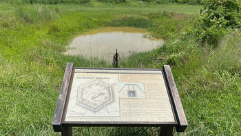 HistoryThe fort was built in the summer of 1863 as a hexagonal earthwork lined on the interior with wooden planks and surrounded on the exterior by a dry ditch. Each side of the hexagon measured some 150 feet long. Armament included four 32-pounder siege guns and three 24-pounder howitzers en barbette. The fort was normally manned by local Union Militia and volunteer infantry. In September 1864 Confederate Maj. General Sterling Price mounted a large cavalry raid into Missouri with an eye to creating enough havoc to divert Union troops from the fighting in the east and to perhaps capture St. Louis or other population centers. On his way to the St. Louis area, he decided to attack the weakly defended Fort Davidson. News of the impending attack of Fort Davidson reached Union General Thomas Ewing who then took two companies of Iowa troops to Fort Davidson to reinforce the garrison, bringing the strength up to about 1500 Union troops. On 27 Sep 1864, some 8,000 Confederates mounted an infantry attack on the fort supported by artillery in the surrounding mountains. Poor timing of the attacking Confederate brigades allowed the fort defenders to concentrate their fire on individual brigades as they came into range. The effect was devastating, only one Confederate brigade made it to the fort and it was driven back when the defenders rained hand grenades down on them when they reached the ditch. The attacking Confederates suffered 1,000 casualties in the 20-minute battle while the Union defenders suffered less than 100 casualties. The Confederates retired from the field and determined to renew the attack the next day. Overnight the Union forces abandoned the fort and blew up the powder stores. The next day General Price found the fort in ruins and the Union troops are gone. Current StatusEarthworks still exist on the site of the Battle of Pilot Knob State Historic Site. Visitor Center & Museum.