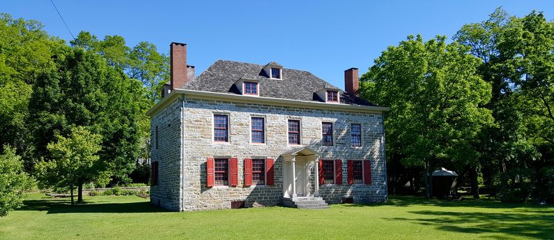 Fort Johnson (8) (1749-1758) - A French & Indian War Fort established as a fortified dwelling in 1749 along the Mohawk River near the present day town of Fort Johnson, Montgomery County, New York. Named Fort Johnson after the owner Sir William Johnson. Abandoned as a fortification in 1758. French & Indian War (1754-1763)Established in 1749 as a fortified residence for William Johnson. Known as Mount Johnson until threatened by the French in 1755 and thereafter known as Fort Johnson with the addition of a palisade enclosing the home. Two blockhouses were added in 1758. The fort became primary meeting place for diplomatic councils between the British and the Iroquois during the French & Indian War between 1754 and 1760. The house was built as a 60' by 32' handsome Mohawk Valley residence, two and a half stories high facing south. The walls were built of grey rough cut limestone with four brick chimneys. The walls were constructed with loophole gun ports for defense. The roof had three dormers on the south side and one each dormer on the east and west sides. The roof prior to the revolutionary war was lead covered and currently slate covered. The house was located on the west side of Kayaderosseras Creek on the north bank of the Mohawk River. William Johnson served as Indian agent and as a commissioned British officer rising to the rank of Major General during the French & Indian War. He became Sir William Johnson in as a result of his service in the British Army at Crown Point, Fort Niagara, Carillon and in the capture of Montreal in 1760. As a titled gentleman, William built a new home at Johnstown in 1762 calling it Johnson Hall. He bequeathed the Old Fort Johnson property to his son, now Sir John Johnson, who occupied it from 1763 until 1774. Sir William Johnson died from a stroke at Johnson Hall on 11 July 1774 during an Indian conference just prior to the beginning of the Revolutionary War. His vast land and property holdings fell to his heirs.