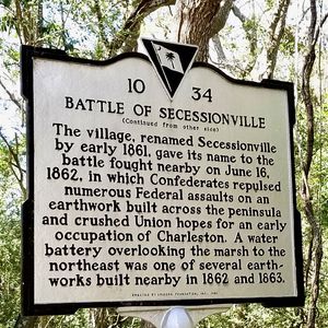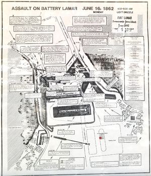 HistoryA Confederate six-gun earthwork first established in 1862 at a narrow neck on the Secessionville Peninsula of James Island, South Carolina. This earthworks and battery anchored the southernmost point on the left flank of a line of Confederate defenses that stretched across James Island from Fort Pemberton (2) on the west side to Fort Johnson (1) on the east side. The Confederate James Island defenses were put in place to defend that land approach to Charleston. The Battle of SecessionvilleIn June 1862, 6,600 Union troops under the overall command of Brigadier General Henry Benham with Brigadier-Generals Horatio G. Wright and Isaac I. Stevens landed at Grimball's Landing near the southern flank of the Confederate defenses. Benham's commanders probed the defenses of Fort Lamar (or Tower Battery as it was known then) and then attacked at 4:30 am on 16 Jun 1862. The Confederate fort, under the command of Colonel Thomas Lamar, was still unfinished at this point and had but 500 or so defenders. There was only one narrow approach road to the fort with the remainder of the peninsula surrounded by impenetrable marshes. The Union troops came in two columns, one behind the other because of the narrow approach and they received withering fire from Confederate cannons loaded with grapeshot. Other Union units attempted to approach from the marshes and were likewise cut down with heavy fire. Union troops of the 79th New York Volunteer Infantry under Lt. Colonel David Morrison succeeded in scaling the fort wall and the fighting became hand-to-hand combat. The Union forces were overcome when their reinforcements failed to arrive and they fell back. A general retreat was ordered and the battle was over in less than an hour. Abandoned at the end of the war probably on 17 Feb 1865 when all of the Charleston defences were abandoned.