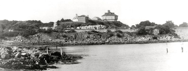 In 1844-46 a large octagonal two story blockhouse was built in the upper battery. The blockhouse was built with strong timbers on a stone foundation and included a subterranean magazine located in the center of the blockhouse. Officer's quarters were located on the upper floor of the blockhouse while the enlisted quarters were on the lower level and the adjacent buildings.