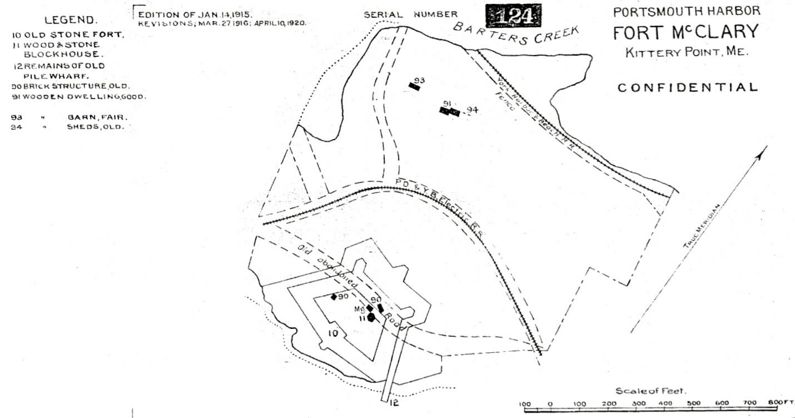 Fort McClary (1808-1918) - A Second System Coastal Fort first established in 1808 on Kittery Point in York County, Maine. Named for Major Andrew McClary, who died in 1775 at the Battle of Bunker Hill during the Revolutionary War. Abandoned in 1918.