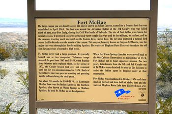Fort McRae (1863-1876) - A U.S. Army fort first established by California Volunteers during the U.S. Civil War in 1863 near Elephant Butte, Sierra County, New Mexico. Named Fort McRae after Captain Alexander McRae (Cullum 1516), 3rd U.S. Cavalry, who was killed in the Battle of Valverde on 21 Feb 1862. Abandoned in 1876. HistoryEstablished 3 Apr 1863 by Captain Henry A. Greene, 1st California Volunteer Infantry. The post protected settlers and travelers from the Apache along the Jornada del Muerto (journey of the dead) road from Dona Ana. At the close of the U.S. Civil War, Fort McRae was still garrisoned by companies of the 1st California Volunteer Infantry. They continued to garrison the post until August 1866 when they were replaced by Companies C and K of the 125th U.S. Colored Infantry (Buffalo Soldiers) under the command of Captain E. P. Horne. The garrison was subsequently reduced to a single company. While at the post the black soldiers built several new buildings and put a new roof on the hospital. They also made 25,000 adobe bricks and constructed officers' quarters with them. Abandoned on 30 Oct 1876 and turned over to the Interior Department 22 Jul 1884.