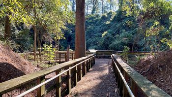 Surprisingly the visitor center/museum was open and manned by a single employee who gave us a great orientation, showed us a video, showed us around the exhibits, and then formed up a small tour group to see the forts. The Fort Randolph earthworks is a very tall circular fort that is now surrounded at the base by a wooden walkway with a wooden walkway leading up to the interior. Both the walkway to the interior and the walkway to the backside of the fort were blocked and damaged by fallen trees. The walkway to Fort Buhlow was completely blocked.