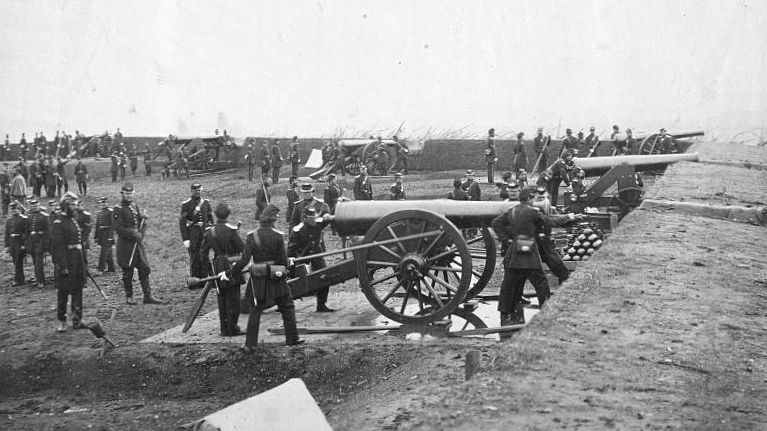 History of Fort RichardsonOne of the ring of Union fortifications surrounding Washington DC during the U.S. Civil War, see Washington DC Fort Ring. Fort Richardson was also one of 33 forts on the Virginia side of the Potomac River that made up an outer defense line for Washington DC known as the Arlington Line. Established in September 1861 as a detached redoubt with a perimeter of 316 yards and emplacements for 15 guns. Armament included six 24 pounder cannon, two 24 pounder field howitzers, three 30 pounder Parrott rifles, one 10" mortar, one 24 pounder Coehorn mortar and one 100 pounder Parrott rifle. The fort enclosed the 15 gun platforms, 2 magazines and a bombproof. A 29 Mar 1862 report described the status of the post: "Nine guns, as follows: Two 24-pounder barbette; three 24-pounder siege guns; two 30- pounder Parrotts, and two 10-inch siege mortars. One of the mortars is unserviceable from its trunnions being too large for the bed. One magazine leaks slightly. In other respects fort in good condition as to guns, ammunition, parapets, and abates." A 17 May 1864 report from the Union Inspector of Artillery noted the following: "Fort Richardson, Major Trumbull commanding.–Garrison, three companies First Connecticut Heavy Artillery–1 major, 12 commissioned officers, 1 ordnance-sergeant, 412 men. Armament, two 24-pounder field howitzers, six 24-pounder siege (smooth), one 100-pounder rifled Parrott, three 30-pounder rifled Parrotts, two 24-pounder Coehorn mortars, one 10-inch mortar. Magazines, two: dry and in good order. Ammunition, full supply and serviceable. Implements, complete and in good order. Drill in artillery, fair. Drill in infantry, fair. Discipline, fair. Garrison sufficient for the work." The fort was abandoned in 1865 at the end of the war.