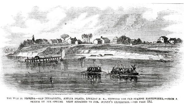 HistoryThe Spanish colonial town of old Fernandina was laid out in 1811 in a grid pattern by surveyor George J. F. Clarke. The town occupied a neck of land with water on three sides on Amelia Island. Fernandina was seized from the Spanish by American forces under General George Mathews in 1812. Negotiations began for the withdrawal of U.S.troops early in 1813. On 6 May 1813, U.S. Army forces abandoned Fernandina and Spanish forces reoccupied the Island. The Spanish began construction of Fort San Carlos sometime in 1816. The Fort occupied the harbor side south west edge of the town with an eight gun earthworks battery. Two blockhouses protected the land access route on the south side and the whole town was surrounded with pickets. An 1821 map of Fernandina shows the fort occupying the area bounded by Estrada St., White St. and Somervelus St. The town street plan is the same today as it was in 1821. In 1817, a Scottish mercenary, Gregor MacGregor, led a small army in an assault on Fort San Carlos. On 29 Jun 1817, the Spanish commander abandoned the fort and MacGregor proclaimed the island to be the “Republic of the Floridas”. On 4 Sep 1817 he fled Fernandina, leaving a small garrison at Fort San Carlos. On 13 Sep 1817 at 3:30pm, the Battle of Amelia Island began when the Spaniards erected a battery of four brass cannons east of the fort and began firing. The Spanish had some 300 men and two gunboats while the defenders had but 94 men and three ships. The Spanish gun battery was positioned on McClures Hill (see marker picture) southeast of the fort and the Spanish troops were positioned between the battery and the fort. The spanish continued the bombardment until dark and, failing to take back the fort, the Spanish commander withdrew. On 31 Oct 1817, President James Monroe sent U.S. forces to retake Amelia Island and he held it in trust until Florida was ceded to the U.S. by the Adams-Onis Treaty. The U.S. abandoned the fort shortly after the transfer in 1821.