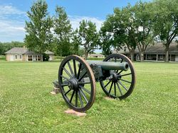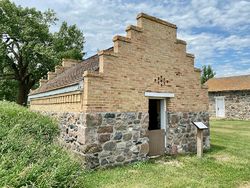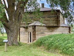 Fort Sisseton (1864-1889) - First established in 1864 as Fort Wadsworth (2) by Major John Clowney as a U.S. Civil War era frontier fort. Initially named after Brigadier General James S. Wadsworth, who was mortally wounded, 8 May 1864, in the Battle of the Wilderness, in Virginia, during the U.S. Civil War. Located near present-day Lake City in Marshall County, South Dakota. Renamed Fort Sisseton, 29 Aug 1876, after the local Sisseton Sioux Indian Tribe. Abandoned in 1889. HistoryThe original military reservation that was to contain Fort Sisseton was set aside in February 1871 by President Ulysses S. Grant as a 9 by 15 mile, 82,000-acre military reservation. When surveyed by two teams under 1st Lt. Faber it became a five-sided polygon to accommodate a portion of the Lake Traverse Indian Reservation that intersected the area. The boundaries were marked with five iron markers that all survive today, two of which have been relocated to Fort Sisseton and are on display outside the Visitor Center. The fort was established on 1 Aug 1864 as Fort Wadsworth by Major John Clowney, 30th Wisconsin Infantry, as a result of the 1862 Sioux Indian uprising. In 1862 the Sioux tribes seriously underestimated the ability of the U.S. Government to fight the U.S. Civil War and Sioux tribes at the same time. The tribes attacked all along Minnesota frontier and the Dakota Territory, killing settlers and miners wherever they found them. Over 400 settlers were killed on the first day. In August 1862 more than 30,000 people were driven from their homes and 800 settlers were killed by hostile Sioux. The uprising was put down and the surviving Sioux removed to reservations but conflicts continued. Fort Wadsworth was established as one of a number of forts to police the Sioux reservations and enforce the treaties. Strategically located atop a tableland called Coteau des Prairies, the fort was built to respond to any hostile Indian outbreaks and to protect travel routes to the goldfields in Idaho and Montana. The fort was constructed on a square plan with a central parade that had the enlisted barracks on the east side, the officer's quarters on the west side, the hospital and school on the north side, and the administrative functions on the south side. Surrounding the post boundary was an earthwork some eight feet high with an outer ditch. A log stockade was originally planned but not built. At the northwest corner of the earthworks, a two-story log blockhouse was built to provide protective fire along flanks of the earthworks. A single-story log blockhouse was also built on the opposite Southeast corner. Inside the earthworks on the south end of the post were a number of log dwellings that housed the Indian scouts and the laundress quarters. The enclosed portion of the post was surrounded on three sides by lakes. Several important buildings were built outside the earthworks, the most important to the personnel at the fort was the Suttler's Trade Store. The Trade Store carried goods and supplies not issued by the military but considered necessary for health, morale, and recreation purposes. Trade store items were purchased by patrons with their own money and the store functioned much like the modern-day PX or BX on nearly all military installations. The Suttler himself was a civilian contract employed with a contract term of three years that operated under a set of rules determined by the post commander. Among the most popular items sold was alcohol. Other buildings outside the earthworks included the stables, blacksmith shops, wagon shed, commissary NCO quarters, roof house, and coal shed. The post was renamed Fort Sisseton on 29 Aug 1876, after the local Sisseton Sioux Indian Tribe, when it was discovered that the original name conflicted with a Fort Wadsworth on Staten Island, New York, also named for BG James S. Wadsworth in 1865. By the 1880s the need for the fort had disappeared and the post was turned over to the Interior Department for disposition 22 April 1889 and abandoned by the Army on 9 Jun 1889.