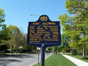 Fort Wyoming (1771-1784) - A colonial fort established in 1771 during the Pennamite War by Captain Amos Ogden and Pennsylvania settlers in present day Wilkes-Barre, Luzerne County, Pennsylvania. Captured and destroyed by Connecticut Yankee settlers. Rebuilt in 1778 as a Revolutionary War defense. Renamed Fort Dickinson (2) in 1783. Abandoned and destroyed in 1784. Pennamite War (1769-1799)This was a colonial fort established in January 1771 during the Pennamite War by Captain Amos Ogden and Pennsylvania settlers. The fort was captured and destroyed by Connecticut Yankee settlers in a land claim dispute. The fort was rebuilt in 1778 as a Revolutionary War defense. Renamed Fort Dickinson (2) in 1783. Abandoned and burnt down in 1784 by Connecticut settlers as the Pennamite War came to an end and the land claims issue was resolved. Current StatusMarker only in Wilkes-Barre, Luzerne County, Pennsylvania.
