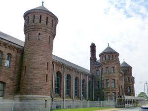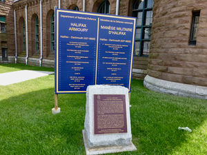 Halifax Armoury (1895-Present) - A Canadian Federal Armoury established in 1895 in present day Halifax, Nova Scotia, Canada. Active military armoury. HistoryEstablished in 1895 and completed in 1899 as a part of a program to reform and expand the Active Volunteer Canadian Militia prior to the start of World War I. Located some five blocks northwest of the Halifax Citadel. The Armoury was built as a huge rectangular red rough faced sandstone building with administrative offices along the two long side. Towers guard three of the four corners of the building and a large troop door is centered at the front. One of the major works of architect Thomas Fuller and his last major project. Current StatusActive Canadian Federal Armoury.