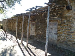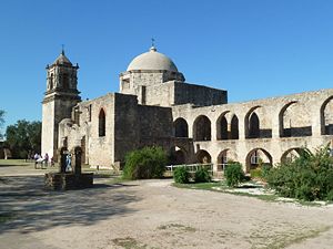 Mission San Jose y San Miguel de Aguayo (1720-1824) - A fortified Franciscan Spanish Mission established in 1720 by decree of the governor of Coahuila and Texas in present day Bexar County, Texas. Formally closed by the Franciscans in 1824. HistoryThe founding ceremonies for the mission were held on 23 Feb 1720. The mission concept included bringing Indians into the mission and organizing a Christian community with the Indian leaders functioning as the leaders of the community. The priest was responsible for the religious instruction and care of the community, two soldiers were originally assigned for protection. Additional protection was provided by soldiers stationed at the nearby Presidio San Antonio de Bexar. The mission was built as a rectangle with the outer walls constructed of stone and stone apartments lined the walls on three sides. The stone church and church quarters occupied the back of the compound. A granary and a grist mill were also located at the back of the compound. A single bastion provided protection for the main entrance. The soldiers quarters were built along the fourth side in back of the church. The missions were among the strongest fortifications built in texas. In 1768 at the peak of the missions growth, the population numbered 350 Indians housed in 84, two room apartments. In the 104 years of operation, over 2,000 Indians were baptized. Mission San Jose was formally closed on 29 Feb 1824 when the mission was secularized and all the church property turned over to the community. The Franciscans returned to the mission in 1931. The restoration of the mission began in the 1930s and continues today. The U.S. Congress created the San Antonio Missions National Historical Park in 1978 and operates the missions in a cooperative relationship with the Catholic Archdiocese of San Antonio. Worship services continue today.