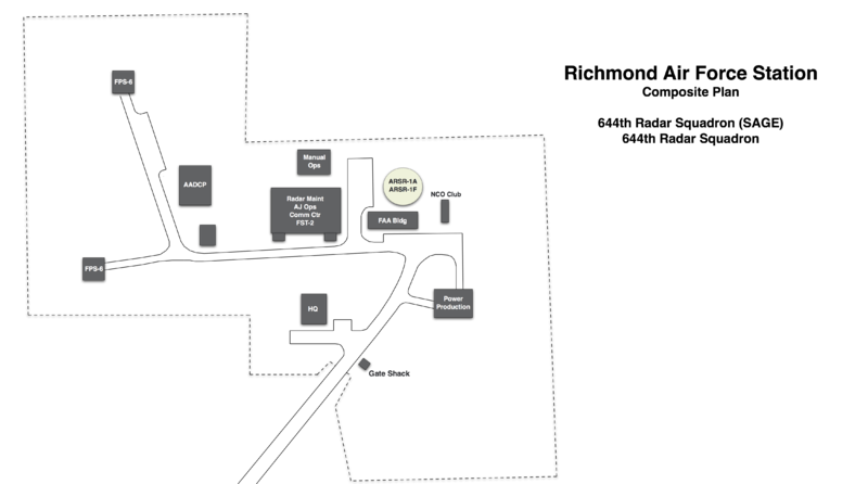 Richmond Air Force Station (1959-1992) - A Cold War U.S. Air Force Radar Station established in 1959. Located on the former Richmond Naval Air Station, Miami-Dade County, Florida. Initially assigned a Sage ID of Z-210 and later a JSS ID of J-06. Included the joint use Richmond FAA Radar Site (1959-1992) and Homestead Army Air Defense Command Post HM-01DC (1962-1979). Destroyed in 1992 by hurricane Andrew and abandoned. Coverage replaced by a new joint use Tamiami FAA Radar Site (J-06A) at Tamiami, Florida. HistoryEstablished in 1959 and became operational in 1959 with an FAA ARSR-1 radar feeding radar data manually to FAA Air Route Traffic Control Centers and USAF Direction Centers. The 644th Radar Squadron (SAGE) was activated on 25 Apr 1960 at Richmond Air Force Station. In 1960 a communications & electronics building was constructed. It was built to house Radar Maintenance, Anti-Jamming Operations, a Communications Center and an FST-2 coordinate data transmitter. Early in 1961, FPS-6 height-finders and the FST-2 computer were installed. This configuration (a SAGE qualified long-range search radar and two SAGE qualified height-finders) met the requirements for transition to SAGE System operation. SAGE System TransitionThe transition of the manual GCI system to the automated SAGE system began with the installation of the FST-2 coordinate data transmitter and search radar upgrades. The FST-2 equipment digitized the radar returns and transmitted the digital returns to the SAGE direction center. Under the SAGE System, interceptor aircraft were directed to their targets by the direction center computers and controllers, greatly reducing the need for local controllers and equipment at every radar station. The FST-2 was a very large digital system using vacuum tube technology. Over 6900 vacuum tubes were used in each FST-2 requiring 21 air-conditioned cabinets, 40 tons of air conditioning, 43.5 kva of prime power, and usually a large new addition to the operations building. The FST-2B modification added two more cabinets but with newer solid-state (transistor) technology to process coded responses from aircraft transponders. SAGE System Operation