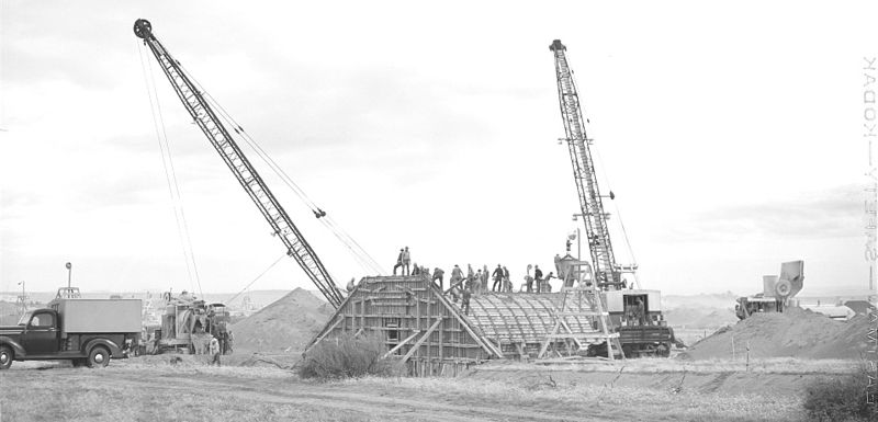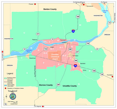 Umatilla Ordnance depotThe U.S. Army's decision to locate this Ordnance Depot in northeastern Oregon came because the area had a low population and lots of undeveloped lands. The 17,000-plus acres site was located along the Columbia River, along east-west railroad tracks and a major highway system. J. A. Terteling & Sons of Boise, Idaho obtained the prime construction contract in January 1941 and construction began that month. At the peak of the 35 million dollar construction project over 7,000 people were employed. The project involved the construction of 1001 munitions storage igloos. The ends and sides of each igloo were ten inches of reinforced concrete, covered with two feet of dirt. There were two sizes of igloos, one 30 by 80 feet, and the other 24 by 61 feet. The igloos were designed to avoid catastrophic explosions of multiple igloos if one of them were to suffer an explosive accident. The igloos were designed to direct the force of an internal explosion upward not out so as to protect surrounding igloos. Staggered igloo placement added to the protection. The validity of these protections was tested on 21 Mar 1944 when 264 five-hundred-pound bombs exploded in an igloo. Six civilian workers died in the blast but none of the adjacent igloos were damaged. Umatilla Chemical DepotIn 1962 the Depot was assigned a new mission, receiving and storing chemical munitions, and a new name the Umatilla Chemical Depot. The Depot received and stored various military chemical munitions between 1962 and 1969 Umatilla Chemical Agent Disposal FacilityA Chemical Agent Disposal Facility was constructed between 1997 and 2001 at the Depot to safely deactivated and dispose of all of the stored chemical agents. In September 2004 Demilitarization operations began with chemical munitions transported from storage igloos to the demilitarization plant in Enhanced On-Site Containers (EONCS). The EONCS were resistant to fire, impact, puncture, or crushing, and 7,534 EONCS were delivered without incident.