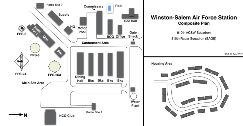 Winston-Salem Air Force Station (1956-1970) - A Cold War U.S. Air Force Radar Station established in 1956. Located near Winston-Salem, Forsyth County, North Carolina. Initially assigned a Permanent ID of M-130 and later a Sage ID of Z-130. Closed in 1970. HistoryEstablished in October 1956 and became operational in October 1957 as Winston-Salem Air Force Station manned by the 810th Aircraft Control & Warning (AC&W) Squadron. Initial equipment included the MPS-11 search radar and a FPS-6A height-finder radar. The MPS-11 radar was replaced by an FPS-8 radar that saw service between 1960 and 1962. SAGE System TransitionThe transition of the manual GCI system to the automated SAGE system began with the installation of the FST-2 coordinate data transmitter and search radar upgrades. The FST-2 equipment digitized the radar returns and transmitted the digital returns to the SAGE direction center. Under the SAGE System, interceptor aircraft were directed to their targets by the direction center computers and controllers, greatly reducing the need for local controllers and equipment at every radar station. The FST-2 was a very large digital system using vacuum tube technology. Over 6900 vacuum tubes were used in each FST-2 requiring 21 air-conditioned cabinets, 40 tons of air conditioning, 43.5 kva of prime power, and usually a large new addition to the operations building. The FST-2B modification added two more cabinets but with newer solid-state (transistor) technology to process coded responses from aircraft transponders. SAGE System Operation