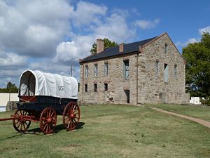 The second fort, originally planned as a large pentagonal masonry work with five bastions, was built in 1839 due to settler demands over the Indian Removals from the southeast. Camp Thomas, later renamed Camp Belknap (1838 - 1846), was built adjacent to the first fort site while the second fort was being constructed. Construction was halted in 1841, and the fort was then modified as a supply depot for other western forts. Seized by Confederates in 1861, captured by the Union in 1863. Abandoned in 1871.