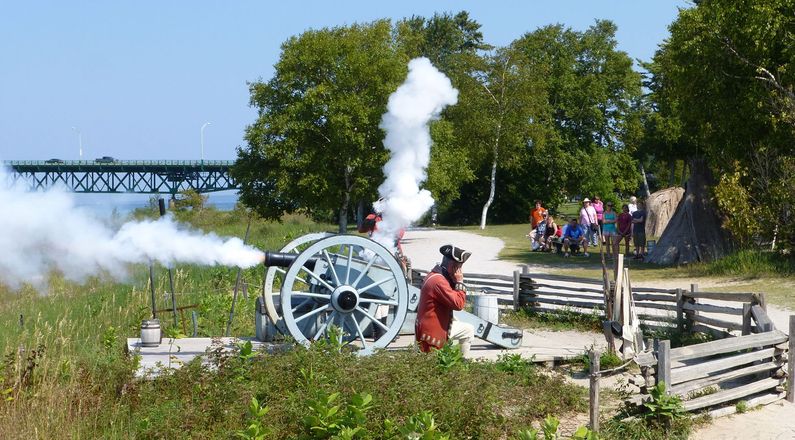 [[File:Fort Michilimackinac Cannon - 6.jpg|thumb|left|795px|Fort Michilimackinac Cannon Firing]] | |||