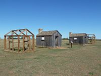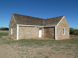 Current StatusThe site is now Fort Griffin State Historical Park. The partially restored ruins of Fort Griffin are on a bluff overlooking the old town site of Fort Griffin and the Clear Fork of the Brazos River Valley. The ruins include a hand dug well, a mess hall, barracks, a library, a rock chimney, a store, an administration building, a cistern, a hospital, a powder magazine, the foundation of the officers' quarters, the first sergeant's quarters, a restored bakery, and replicas of enlisted men's huts.