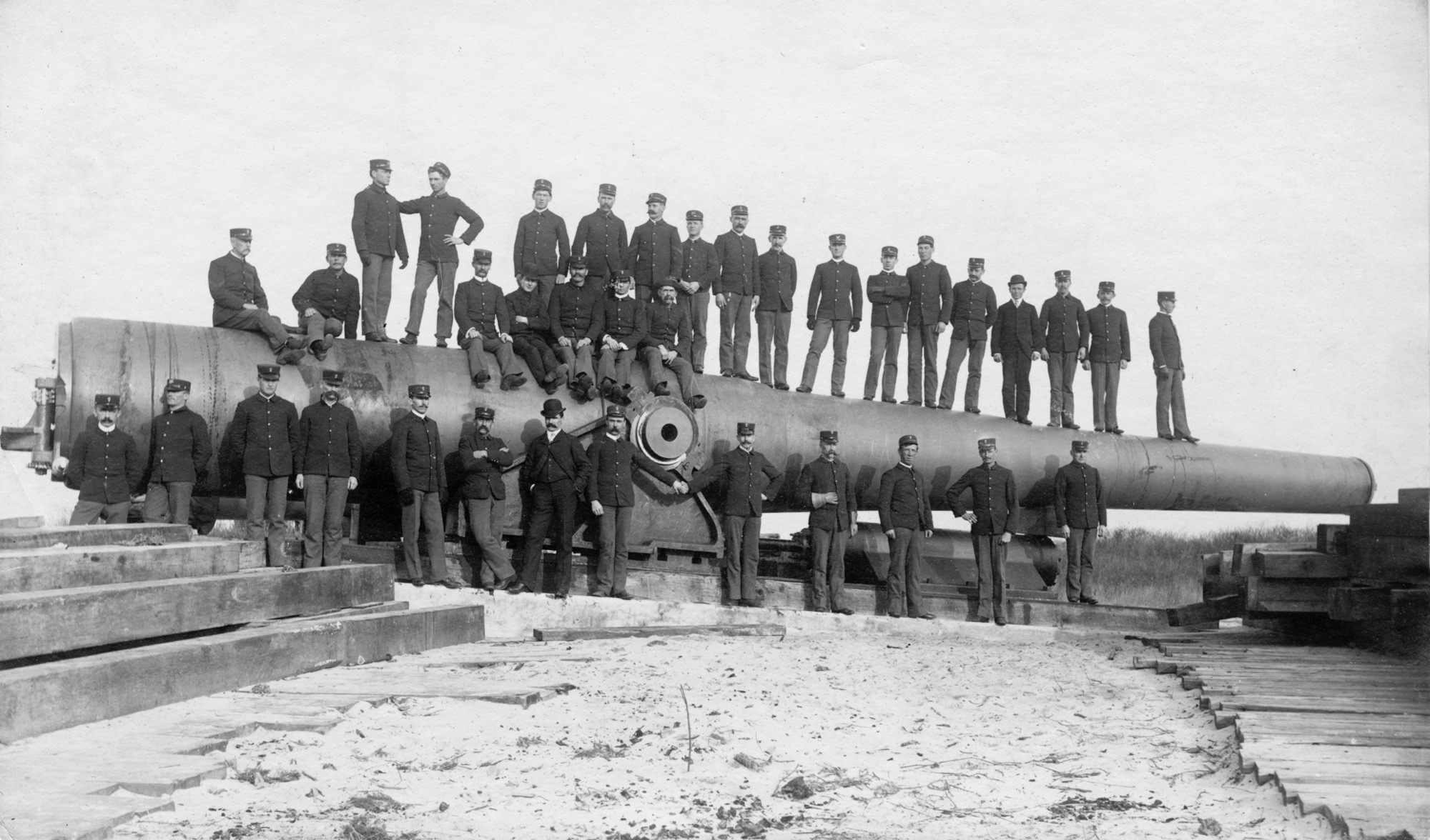 Accompanying Caption: The "worlds greatest gun" at Sandy Hook proving Ground NJ. Weight 130 tons, length 591 inches, diameter of powder chamber, 60 inches, Powder charge 800 lbs, weight of projectile 2400 lbs, range 30 miles, weight of high explosives in shell 140 lbs. Public domain US Army Photo Photos courtesy of Dan Graves..