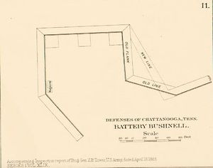 Fort Sherman (2) (1863-1865) - A Union U.S. Civil War fort established in 1863 in Chattanooga, Tennessee. Named after either General Francis T. Sherman or General William T. Sherman, (Cullum 1022). Abandoned as a fortification in 1865 at the end of the war. Fort Sherman HistoryBuilt as a large earthworks fortification overlooking Chattanooga, Tennessee. The fort encompassed an entire line of fortifications from Redoubt Bushnell in the north to Lunette O'Meara in the center to Redoubt Putnam at the western end, all connected and fortified. The works had 20 foot-high earthen walls, with a wide and deep ditch surrounding.