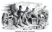 Fort Harrison (1811-1818) - Constructed in 1811 to protect Vincennes, the capital of the Indiana Territory and named after General William Henry Harrison who ordered its construction. Abandoned in 1818. Also known as Fort William Henry Harrison (3), Camp Battelle and Camp Battelle des Illinois. Fort Harrison (1) HistoryThe fort was originally 150-feet square with two-story blockhouses at three corners and the barracks forming part of the walls. The fort was completed 28 Oct 1811 and on 7 Nov 1811 the Battle of Tippecanoe took place near Prophetstown. General Harrison defeated the forces of Shawnee Chief Tecumseh but the Indian forces rebuilt Prophetstown and aligned with the British in the upcoming War of 1812. Captain Zachary Taylor was in command of Fort Harrison when the War of 1812 began. A force of 600 Miami, Potawatomi, Kickapoo and Winnebago warriors attacked Fort Harrison on 4 Sep 1812. Captain Taylor had only 15 soldiers (5 of whom were sick) and the help of several civilians to defend the fort. An Indian warrior set the barracks on fire. This set the few defenders into a panic and the Indian warriors began firing upon the fort. Taylor ordered the fort's surgeon and a handful of defenders to control the fire. The remaining few of the garrison returned the fire of the Indians so fiercely that they were able to hold off the attack. The Indian force withdrew later that day and when reinforcements arrived from Vincennes. During the attack the southwest blockhouse was burned down. The fort was rebuilt in 1815-16 with four blockhouses, one at each corner. For his services at Fort Harrison, Captain Zachary Taylor received a brevet promotion to major. Abandoned in 1818 after peace was established.