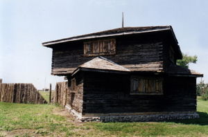 The original fort was built within a flood plane and was evacuated on 25 Jul 1859, reoccupied in Jul 1860 and rebuilt on a high west bank of the Red River. Fort Abercrombie was besieged for more than six weeks during the Dakota Sioux war of 1862 and it was after the siege that the blockhouses were built. The fort was abandoned in 1877 and fort buildings were sold and removed from the site. A Works Progress Administration (WPA) project in 1939-1940 reconstructed three blockhouses and the stockade and returned the original military guardhouse to the site. Beginning in the summer of 2001, a project to refurbish major portions of the WPA project and to reinterpret the site was initiated by the state historical society.