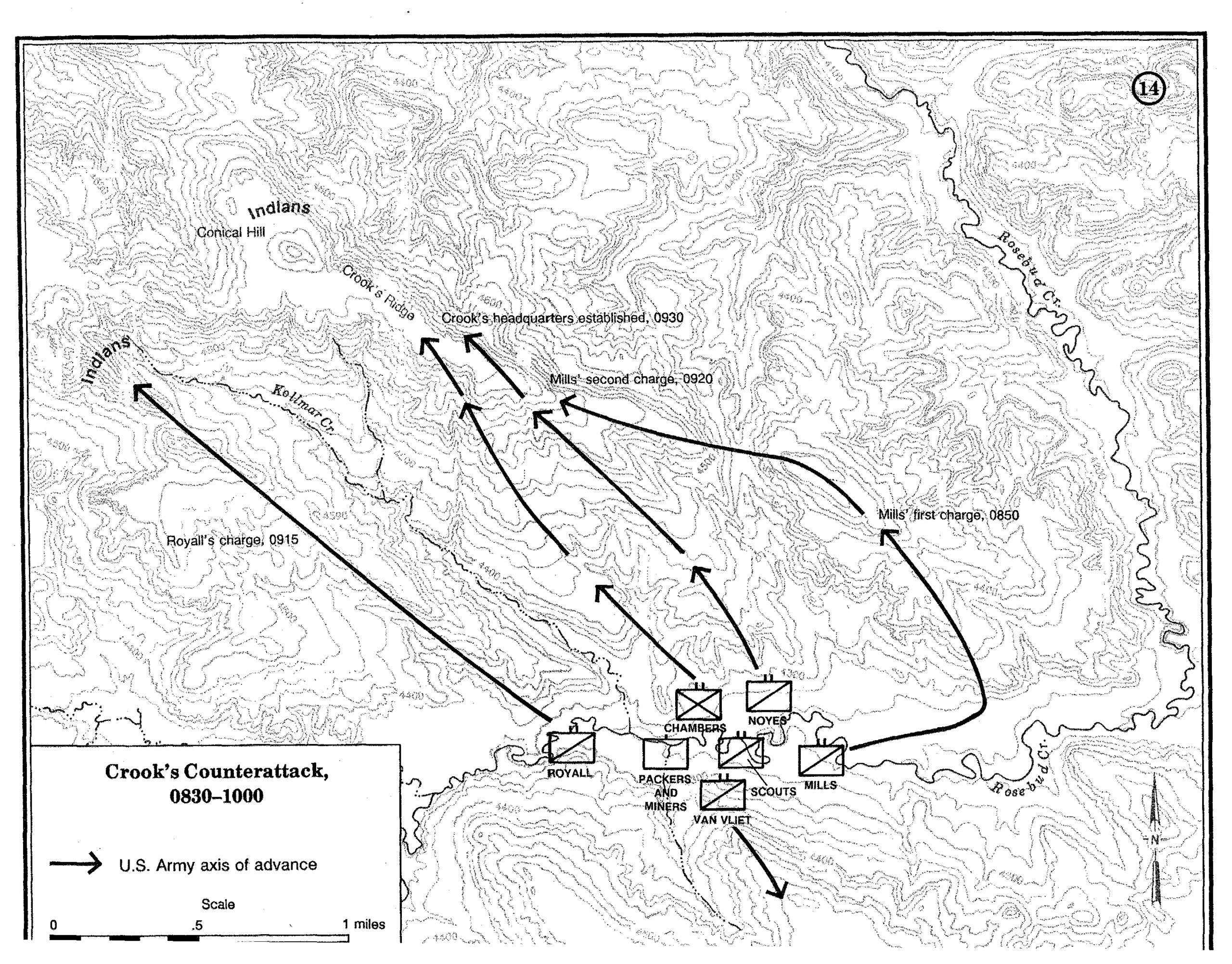 Map 14. The Battle of the Rosebud: Crook's Counterattack, 0830-1000