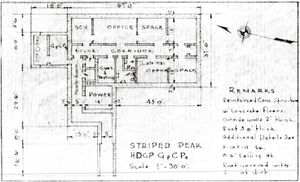 An auxillary HECP-HDCP was located on the water facing side of nearby Striped Peak at the 900' level. The auxiliary HECP-HDCP worked in conjunction with the main HECP-HDCP at Fort Worden to manage the ship traffic entering and exiting Puget Sound and to manage the defense of the Sound. The HECP-HDCP at Striped Peak was equipped with SCR-682 radar #2.