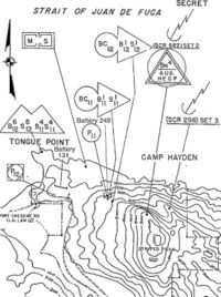 Camp Hayden (1944-1948) - A World War II Coastal Artillery Camp at Tongue Point, Clallam County, Washington. Named for Gen. John L. Hayden a former commanding officer of the Puget Sound harbor defenses. Camp Hayden was abandoned in 1948.