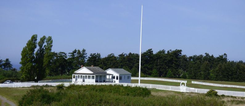 Part of the San Juan Island National Historic Park administered by the National Park Service. One officer's quarters, an original building moved back to the camp from town and one laundress quarters are the only remaining buildings. On a hill above the camp is the earthen outline of a protective redoubt built under the supervision of Superintending Engineer Lt. Henry M. Robert (Cullum 1763) (of Robert's Rules of Order).