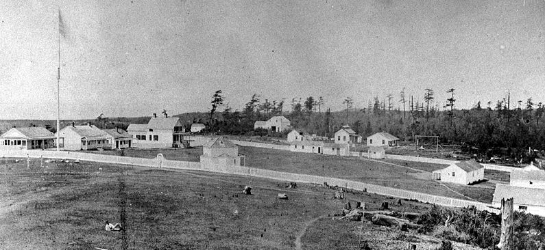 American Camp (1859-1874) - First established as American Camp in 1859 by U.S. Army Captain George E. Pickett (Cullum 1330), and Company D, 9th U.S. Infantry, on San Juan Island, San Juan County, Washington. Renamed Camp Pickett, Post of San Juan (1863), Camp Steele (1867), and finally Camp San Juan Island (1868). Abandoned in 1874. HistoryThe first American Camp was established on 27 Jul 1859 by Captain George E. Pickett and Company D, 9th U.S. Infantry, from Fort Bellingham. Captain Pickett and his troops were ordered to San Juan Island in response to an incident on the Island that came to be known as the Pig War. The Pig War occurred during an unresolved territorial dispute between Britain and the United States over who owned the San Juan Islands: the incident that triggered the U.S. military response began when a British pig was killed by an American farmer. Captain George Pickett arrived on San Juan Island with 51 men from Company D, 9th U.S. Infantry and four officers. On the British side, the 31‑gun Royal Navy frigate Tribune was sent to the island as a guard ship from Esquimalt. The initial U. S. campsite proved unsuitable and it was moved twice in a matter of days to a more suitable site on high ground on the south end of the island. By August 1859 the force had expanded to 424 men including ten officers including Lt. Colonel Silas Casey (Cullum 467), who assumed command and escalated tensions. The U.S. units involved included elements of the 9th U.S. Infantry and the 3rd U.S. Artillery. In September, 2nd Lieutenant Henry M. Robert (Cullum 1763) (of Robert's Rules of Order fame) is shown as already engaged in constructing a redoubt above the camp. Cooler heads prevailed at all levels with the intervention of General Winfield Scott. Lt. Colonel Silas Casey was replaced and the U.S. garrison was reduced to a mere 66 men with four officers. The English Camp on the north end of the island was similarly reduced and was limited to a single warship. The two garrisons fell into friendly relations, visiting each other's camps on important dates like the 4th of July and the Queen's birthday. The American Camp was garrisoned by regular Union troops throughout the U.S. Civil War. At the beginning of the war Captain George E. Pickett was the camp commander and he remained so until 25 Jul 1861 when his resignation was accepted and he left to join the Confederacy. The post at that time was named Camp Pickett after Captain Pickett and that name was retained until May 1863 just before the Battle of Gettysburg. The boundary dispute was not settled until Kaiser Wilhelm I of Germany negotiated an agreement in 1872 that gave the San Juan Islands to the United States. The British Royal Marines left English Camp that same year but the American Camp remained until abandoned on 1 Jul 1874.