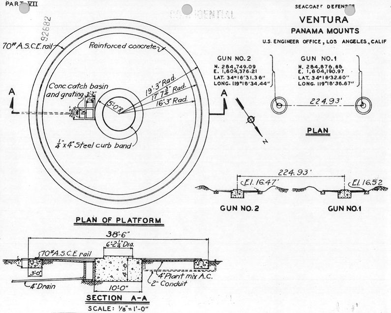 Battery 155 - Ventura (1943-1944) - Battery 155 - Ventura was a temporary, World War II, 155mm coastal gun battery on Panama mounts. Located on the beach at Ventura, Ventura County, California. Battery construction started January 1943, was completed July 1943 and transferred to the Coast Artillery for use 18 Apr 1944 at a cost of $ 9,990.25. Deactivated in 1944. Also known as Battery 2 - Ventura. World War IIOriginally built as a temporary World War II coastal gun battery with two 155mm rapid fire guns mounted on mobile marriages emplaced on circular Panama mounts. Located on a 10 acre site that included some 21 temporary buildings, a rifle range and ammunition magazine. The property was originally obtained from Ventura County on 15 Aug 1942. Units conducted monthly live fire target practice on offshore towed targets. Property returned to Ventura County on 15 May 1945.