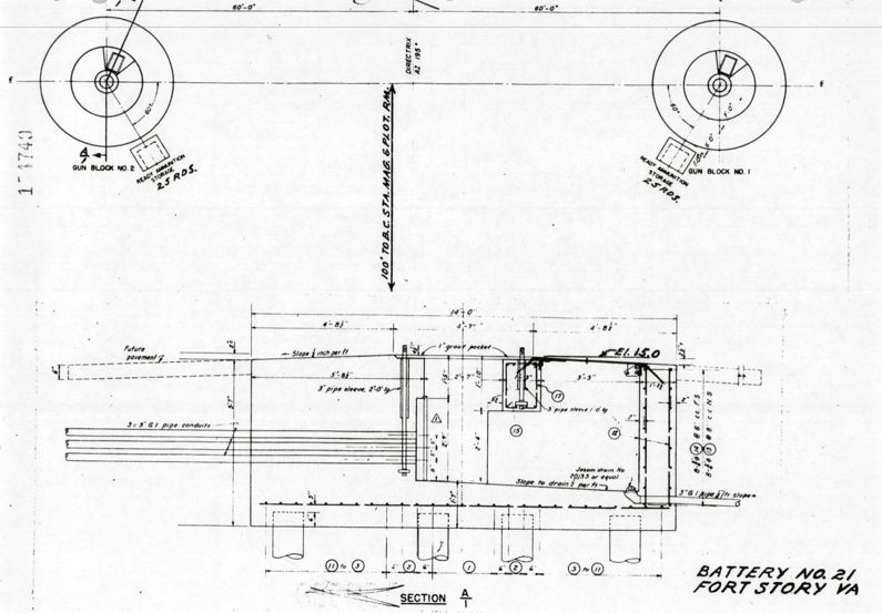 Battery AMTB #21 Gun Position PlanBattery AMTB #21 BC Station, Magazine and Shell Room Building