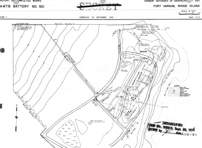 Battery AMTB 921 (1943-1946) - Battery AMTB 921 was a reinforced concrete World War IIAMTB rapid fire 90mm gun battery on Fort Varnum, Washington County, Rhode Island. Battery construction started 1 Apr 1943, was completed 2 May 1943 and transferred to the Coast Artillery for use on 22 Jul 1943. Deactivated in 1946.