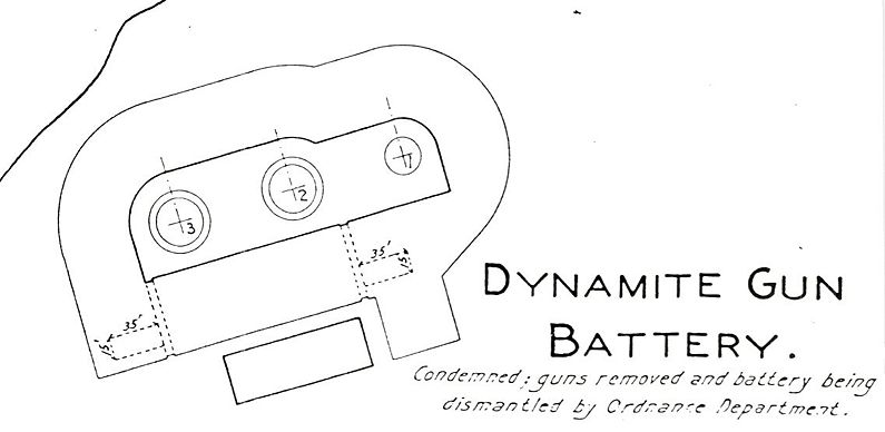 Battery Dynamite (1) (1891-1902) - Battery Dynamite (1) was an experimental compressed air 15 inch and 8 inch coastal gun battery on Fort Hancock (2), Monmouth County, New Jersey. Deactivated in 1902.