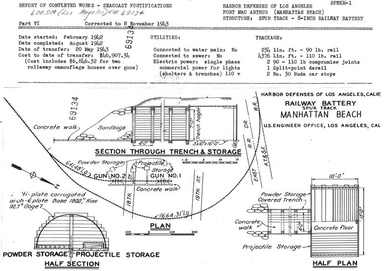 Battery Eubank (1942-1945) - Battery Eubank was a temporary, World War II 8 inch coastal railroad gun battery emplaced on Manhattan Beach Military Reservation, a sub-post of Fort MacArthur, in Los Angeles County, California. Battery support construction started in February 1942, was completed in August 1942 and oficially transferred to the Coast Artillery for use 20 May 1943 at a cost of $ 46,907.34. Probably named for Captain Perry Eubank, the detachment commander. Deactivated in 1944.