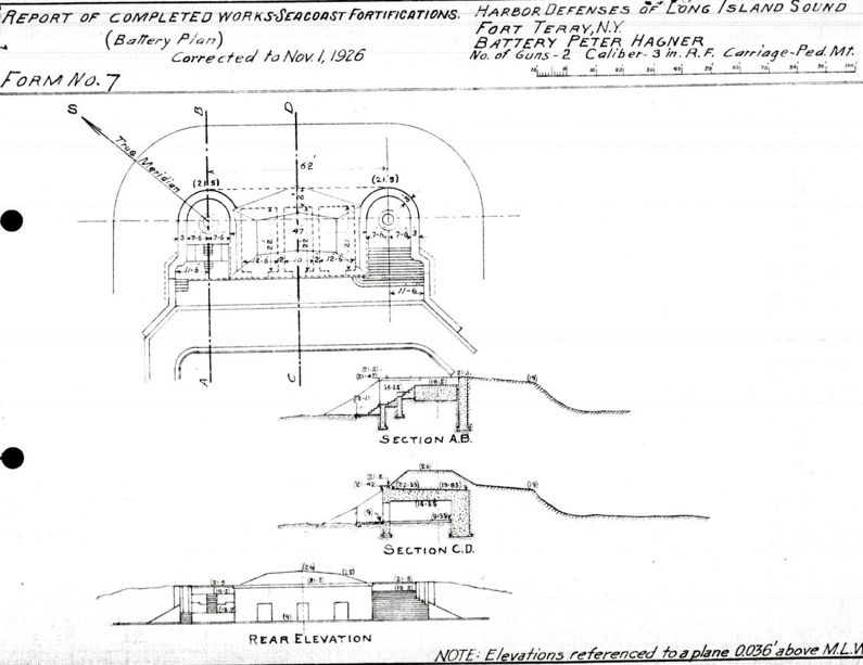 Battery Hagner (1906-1932) - Battery Peter Hagner was a reinforced concrete, Endicott Period 3 inch coastal gun battery on Fort Terry, Plum Island, Suffolk County, New York. The battery was named in G.O. 194, 27 Dec 1904, after Bvt. BG Peter V. Hagner (Cullum 866), U.S. Army (Col., Ordnance Department), who served with distinction during the Mexican-American War and the U.S. Civil War, and who died 11 Mar 1893. Battery construction started in October 1903, was completed in October 1906 and transferred to the Coast Artillery for use 22 Nov 1906 at a cost of $ 15,924.00. Deactivated in 1932. Endicott PeriodPart of the Harbor Defense of Long Island Sound. Originally built as an Endicott Period concrete coastal gun battery with two 3" M1903 guns mounted on M1903 Pedestal mounts. This was a two story battery with the guns on the upper level and the magazines on the lower level. Shells were moved from the magazine level to the gun loading platform by hand. No shell or powder hoists provided. Electrical power was furnished by the Quartermaster post power plant. The guns were not mounted until 10 Jun 1909.