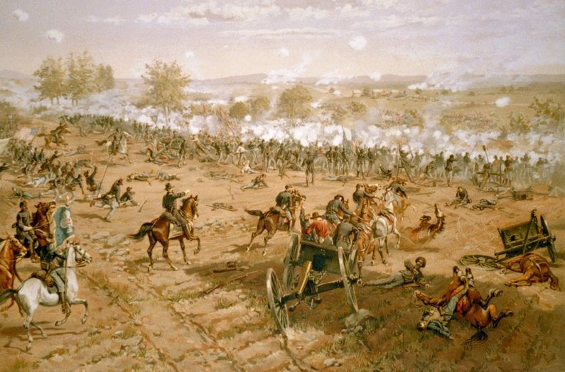 Battle of Gettysburg (1 Jul 1863-3 Jul 1863) - A U.S. Civil War Battle fought between Union forces under Major General George G. Meade, (Cullum 804) and Confederate forces under General Robert E. Lee, (Cullum 542). Known by Union and Confederate forces as Battle of Gettysburg. The battle was fought near the town of Gettysburg in Adams County, Pennsylvania and resulted in a Union victory, with great losses on both sides and became the turning point in the war.
