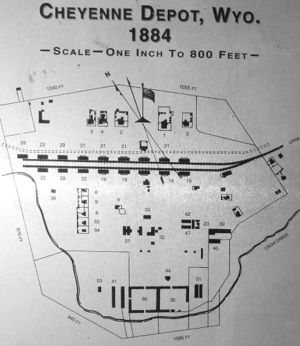Camp Carlin (1867-1889) - First established in 1867 as Cheyenne Depot by Captain Elias B. Carling (Cullum 1834), (Bvt. Lieutenant Colonel; Colonel) to supply adjacent Fort D.A. Russell (2) and thirteen other western forts. Abandoned in 1889. Also known as Cheyenne Ordnance Depot and Camp at Cheyenne. HistoryEstablished as the second largest Depot of the time in the U.S., servicing U.S. Army posts in Wyoming, Nebraska, Utah, Idaho and Colorado. Included Camp Carlin as a cantonment for the depot also known as Camp at Cheyenne.