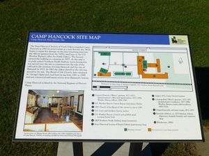 Camp Hancock (1) (1872-1877) - A U.S. Army post established as Camp Greeley in 1872 in present day Bismarck, Burleigh County, North Dakota. Named after Horace Greeley, famous New York Times editor who coined the phrase "Go west young man". Renamed Camp Hancock 7 Oct 1873 after Winfield Scott Hancock (Cullum 1223), commander of the Department of Dakota. Abandoned as a military post in 1877. Continued as a signal station and weather station until 1894. HistoryEstablished on 9 Aug 1872 to protect Northern Pacific Railroad construction crews at present day Bismarck, North Dakota. When the railroad was completed through Bismarck the post was expanded and became a supply depot for other installations in the area. The post was located adjacent to the railroad tracks in downtown Bismarck. The post buildings were built of logs and included a barracks, the post surgeon's quarters and five other buildings. In 1874 a signal station was established at Camp Hancock that was responsible for military messages and also served as a weather observation post. Troops left the camp 12 Apr 1877 but the post continued to operate with a small technical staff until 16 Apr 1894. Current StatusPart of the Camp Hancock State Historic Site in Bismarck, Burleigh County, North Dakota. The log post surgeon's quarters remains but with siding covering the log structure. It is now a museum for the camp and other structures on the property including a 1909 train locomotive.