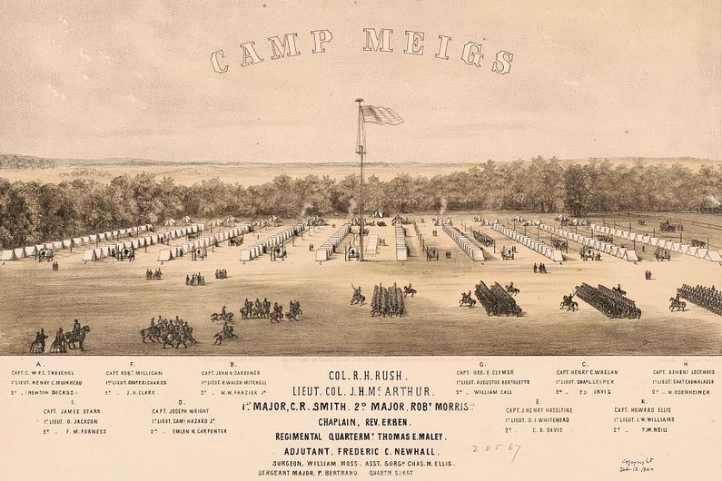 HistoryEstablished in 1862 as a training camp for Massachusetts Volunteer Militia (MVM) troops enlisting for duty in the Union Army during the U.S. Civil War. Readville camps processed and trained at least 29,000 of the 114,000 men who served in the MVM units raised by the Commonwealth and processed at least 54 units. The Camp encompassed 139 acres and included barracks, stables, officers' quarters, kitchens. Massachusetts Black regiments trained at Camp Meigs beginning in 1863. Those units included the 54th Infantry MVM, the 55th Infantry MVM, and the 5th Cavalry MVM. In 1864 Camp Meigs became the site of a thousand-bed US Army General Hospital, caring for the injured and sick of the Massachusetts Volunteer units near their place of enlistment. The hospital came to have some 71-buildings including wards, quarters, kitchens, support buildings, storehouses, etc. The staff treated more than 4,000 troops for campaign-related wounds or disease. The hospital was phased out at the end of the war with last wards being auctioned off in January 1866. At the end of the war, Camp Meigs also became a demobilization center, mustering out and discharging many Massachusetts units returning from the war. Closed in 1865.