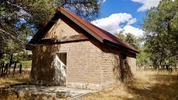 Current StatusSome remains on Coronado National Forest land in Cochise County, Arizona. A ranch house, a barn, and other buildings are still standing. The commissary building has foundational remains and a part of one corner that is still visible. The officer's quarters and the bakery building are still standing but appear modified. There are no road signs announcing the camp entrance and it is easily missed. No structures are visible from the road and all you have to guide you to the camp are the tire tracks leading from the gate. The tracks curve gently to the left and come to a creek crossing filled with rocks. As you cross the creek the barn comes into view and then the ranch house. Overgrown pathways lead you through the field behind the barn where you will find the other remaining buildings. At the center of this field is the Camp memorial cairn. From the cairn, you can see most of the remaining structures and the small mounted interpretive plaques.