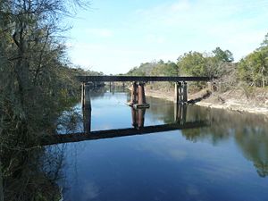 Columbus Fort (1864-1864) - A Confederate earthworks defense established in 1864 at the old town of Columbus in present day Suwannee County, Florida. Abandoned in 1864. U.S. Civil War (1861-1865)The Confederate defenses at the old town of Columbus (now gone) protected the vital rail link across the Suwannee river and the landing at the head of navigation at old Columbus. The railroad bridge across the Suwannee was the major link between east and west Florida. In anticipation of an attack by Union forces coming up the river, Confederate forces built two strong earth works forts on the east side of the river, one on each side of the tracks facing the river. The remains of the fort on the right flank of the bridge are preserved in the Suwannee River State Park. The only threat to the crossing came from the land side on the east by Union General Truman A. Seymour who advanced toward Columbus in February 1864. The invading Union army was stopped at the battle of Olustee on 20 Feb 1864 between Jacksonville and Lake City. The bridge and the defenses at Columbus remained in Confederate hands until the end of the war.