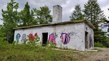 Current StatusAbandoned in Colville, Stevens County, Washington. Very little remains of the housing area and the cantonment area. Only slight bits of foundations can be seen but both sites have exposed sewer manhole covers to verify their locations. The upper main site is remarkably intact although damaged and covered with graffiti. The damage to the operations building, mainly holes in the walls, actually allows enough light inside to allow photography and inspection. The structure of the operations room dias remains, is exposed and can be examined. The SAGE Annex is empty but the structure and the cable throughs are exposed so the layout is easy to confirm. The upper site gate shack is collapsed with only the flat roof visible. The supply building is gone with only the foundation remaining. The radar towers are gone with only some foundational elements remaining. The power building and the radio building remain standing but are empty. The road to the site is passable in a normal passenger car. The site was visited on 5 Jun 2017.