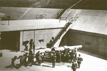 Fort MacArthur, Battery Saxton Mortar Loading circa 1920s, image courtesy Fort MacArthur Museum