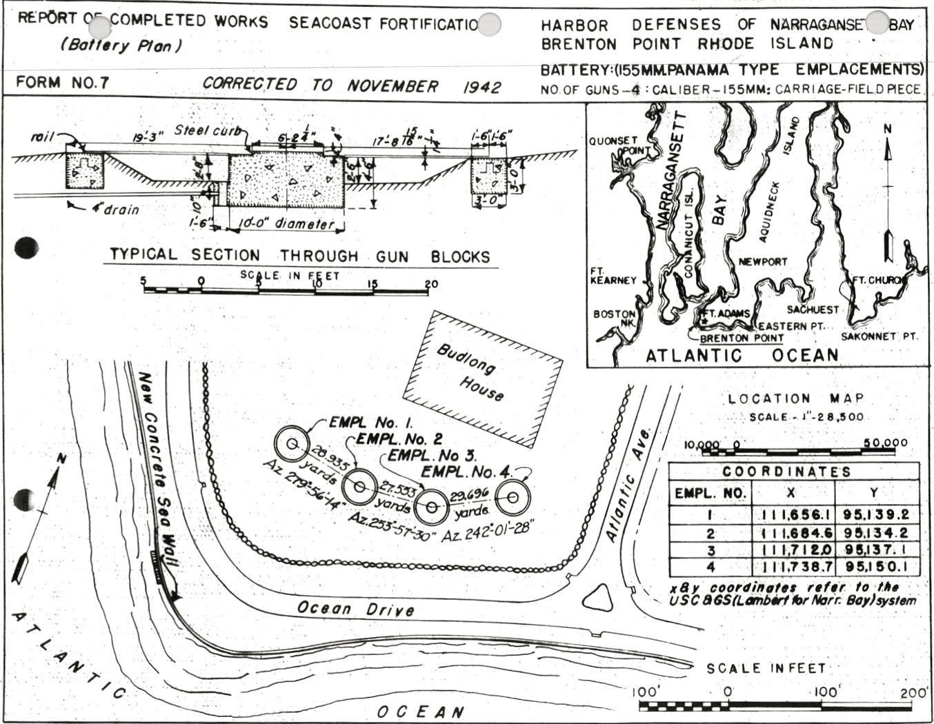 Fort Adams, Battery 155 Brenton Point Plan, NARA