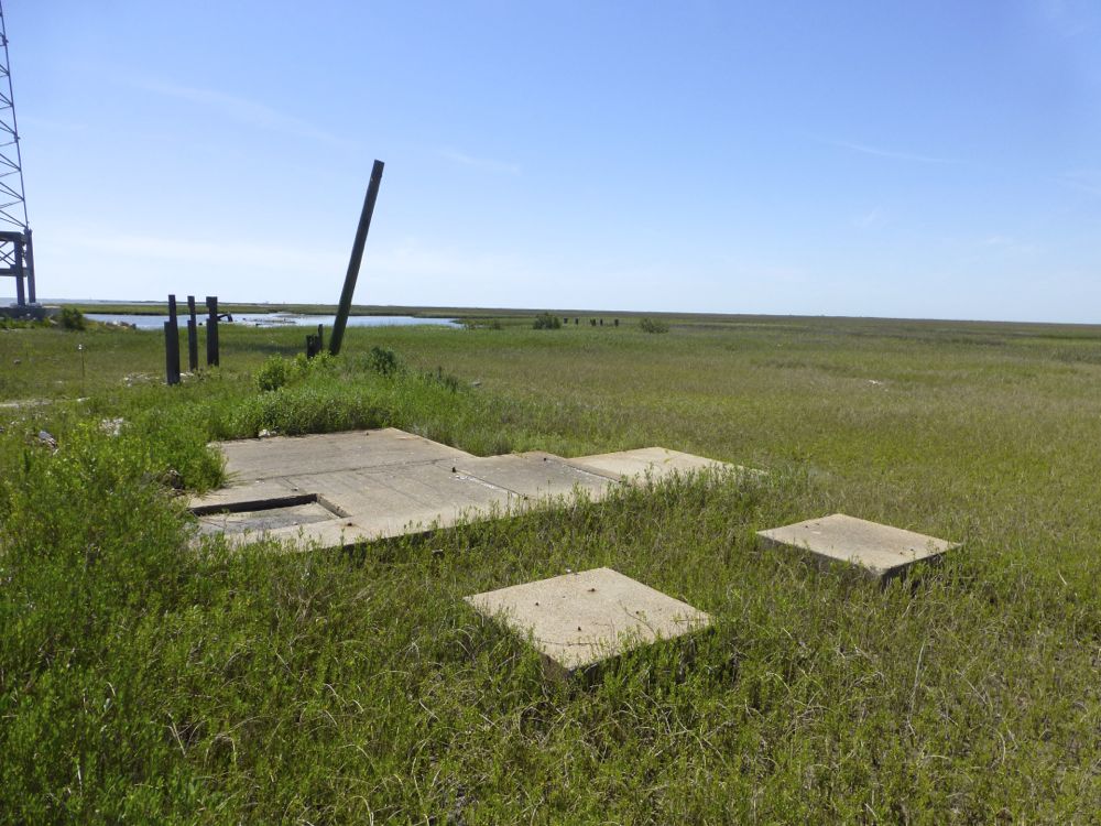 Concrete pad about 100' to the rear of Emplacement #2, photo by John Stanton 12 Apr 2013